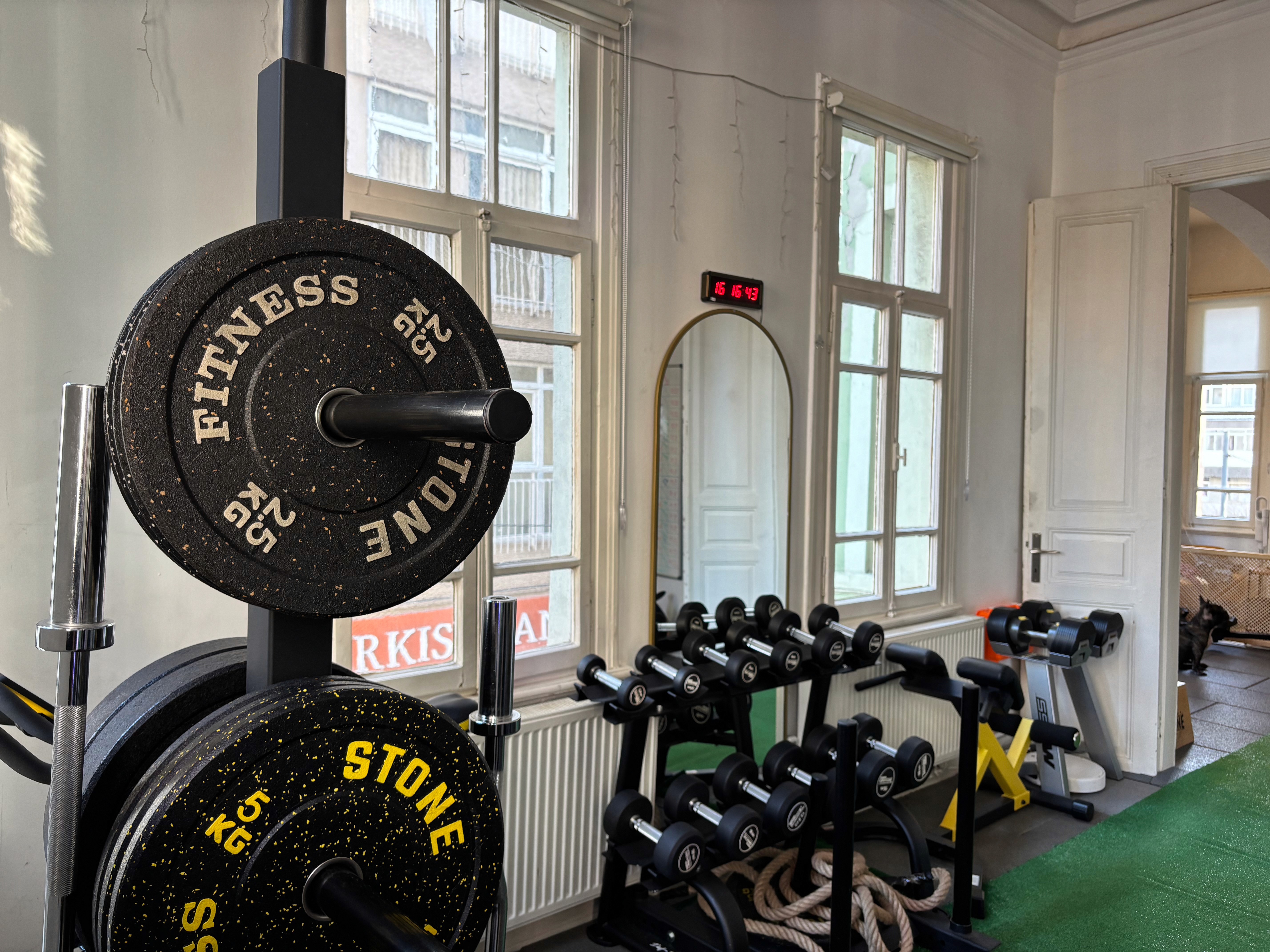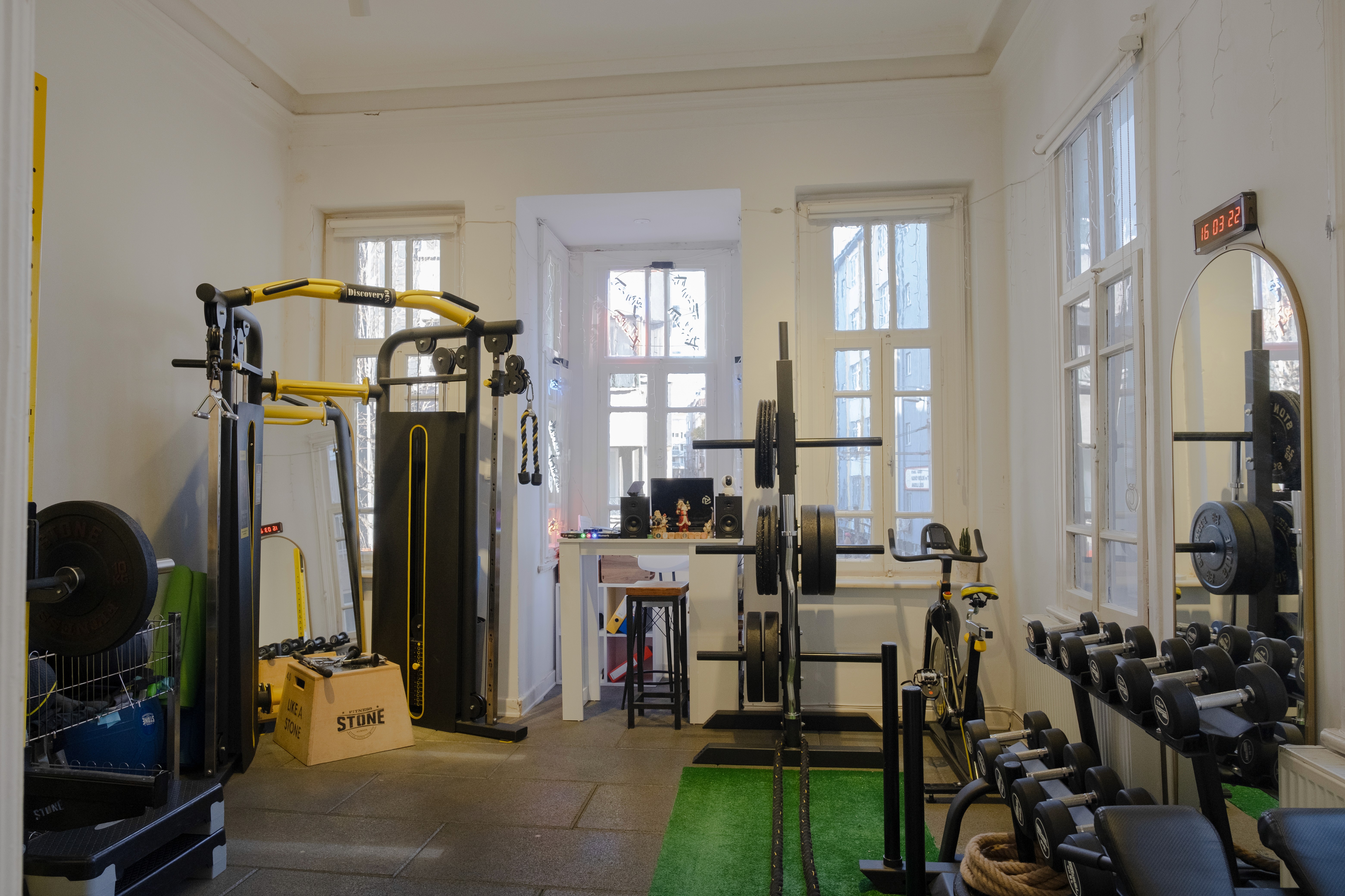 Egzersiz Dükkanı Moda'nın dikkat çeken tarihi yapılarından birinde yer alıyor. Cumbalı mimarisiyle öne çıkan salonumuz, 100 m2 genişliğinde olup 3 salon, mutfak ve bekleme alanı, 1 soyunma odası ve geniş bir balkon sahip. 3.5 metre tavan yüksekliği sayesinde ferah bir ortamda spor yapmanın keyfini çıkarabilirsiniz.
